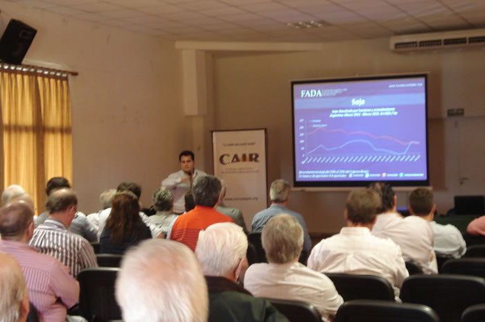 Luego del almuerzo se abrieron las puertas a los Colegas invitados continuando la Jornada con la disertación de invitados oradores: Ing. Agr. Gustavo Roberto Rinaudo, representante de la Cámara del Maní; el Lic. David Miazzo, Economista representante de FADA y el Ing. Agr. José Manuel Cisneros, especialista en Suelos, de la Universidad Nacional de Río Cuarto.