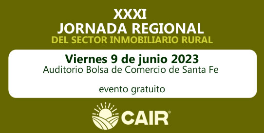 SECTOR INMOBILIARIO RURAL XXXI JORNADA REGIONAL Viernes 9 de junio 2023 Auditorio Bolsa de Comercio de Santa Fe Organiza: la Cámara Argentina de Inmobiliarias Rurales Viernes 9 de junio de 2023 Auditorio Bolsa de Comercio San Martín 2231 Santa Fe Capital Evento gratuito dirigido a Socios y No Socios, Martilleros y Corredores inmobiliarios, profesionales del […]